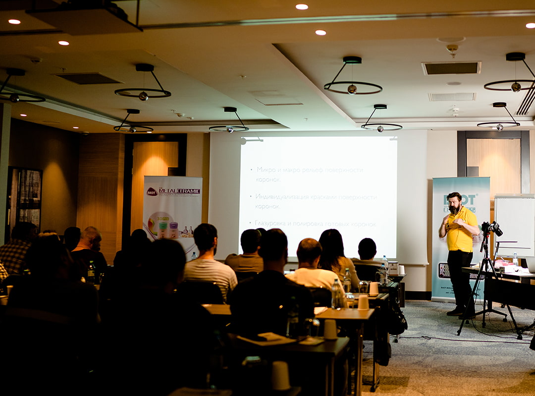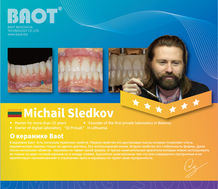 Neste curso, o mestre Mikhail Sledkov explicou o funcionamento do BAOT. porcelana odontológica e blocos de zircônia .